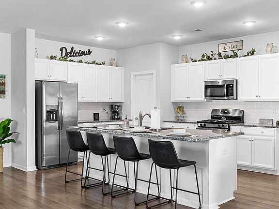 - Features: Breakfast Bar, Kitchen Island, Pantry, Stainless Steel Appliances, Solid Surface Counters