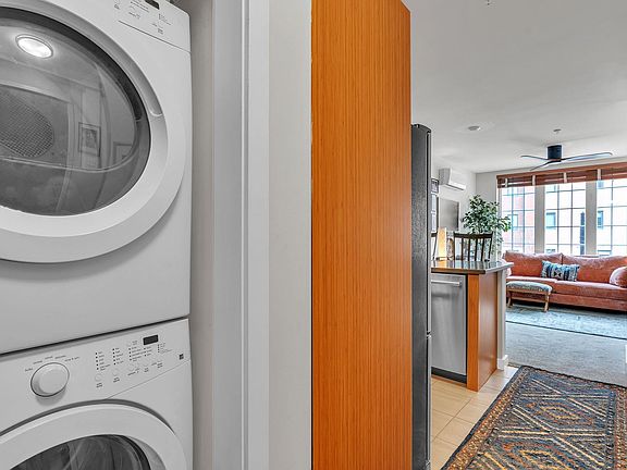Step off the elevator and right into your bright, modern 1-bed, 1-bath condo at the coveted Stratos building in downtown Burlington. This thoughtfully designed unit, currently used sparingly as a pied-a-terre, features an open layout, ensuite bedroom, and in-unit laundry. The kitchen features modern stainless steel appliances and generous cabinet space. The HOA dues include heat, trash, recycling, insurance, building maintenance, water & sewer. The mini split will keep you cool in the summertime. This unit can be rented, making it a strong investment opportunity. Pets are allowed. Enjoy the rare convenience of private garage parking and being just steps from the bike path, Church Street, UVM, and the waterfront.