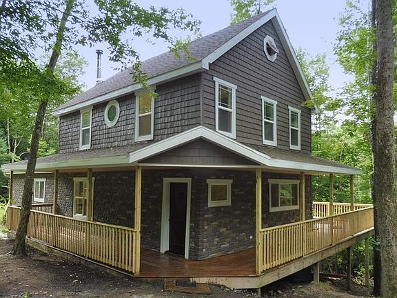Beautiful 2000 sf 3 BR, 2.5 bath home on 10.6 secluded, lush wooded acres. Custom built by owner who never planned to leave. NEW Kraftsmaid Kitchen w/Granite counters. Lrg bay windows overlook huge party deck & view of year round creek. Radiant flr heat & custom built Masonary stove(worlds most efficient form of heating). Not only is the stove effective but it doubles as a gorgeous, double sided, stone fireplace that is the focal point of both the lrg LR & DR. Custom built closets & a huge mstr closet. Mstr bath w/separate shower & tub w/view of the creek. Eng. HW firs, custom blt oak stairs, & fine wood details add to the charm. Energy self-efficient w/Solar Panels, 16 battery back-up system, & gas generator. System is computer managed to run itself. Well insulated & has quality windows & doors. 850 sf of storage in attic. House designed to be quickly & easily winterized. 1000 sf Camp & Orchard w/40+ fruit & nut trees. From the deck you see deer & turkey going to the creek.