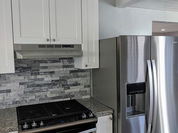 This gorgeous 3 bedroom, 1.50 bath home that has just undergone a complete renovation. The home features large open spaces and vinyl flooring throughout. The living room and each bedroom has a remote-controlled heating and cooling unit with wall-mounted thermostat. The vast living room has beautiful bay windows and is wired for a wall-mounted TV. The living room and dining room have recessed LED light fixtures. The large kitchen features granite counters, white shaker cabinets and stainless steel appliances (slide-in front-control gas range, side-by-side refrigerator, and dishwasher). Full bath has a huge shower with frame-less glass doors. This bathroom also features a Bluetooth speaker. The three-quarter bath features a beautiful corner shower and is conveniently located near the kitchen and entrance from the garage. All three bedrooms are very roomy with ample closet space and ceiling fans. The home also has a large fenced yard with a patio and beautifully landscaped drought-tolerant plants. The large garage has washer and dryers hookups as well as an extra storage area. Pets allowed - 1 cat or 1 small dog (for dogs 20 pounds - restrictions may apply to some breeds) This home is just stunning and will not stay on the market long! Contact us today so you don't miss out on this gem of a home! Owner pays water, trash and sewage. Resident will pay gas and electricity