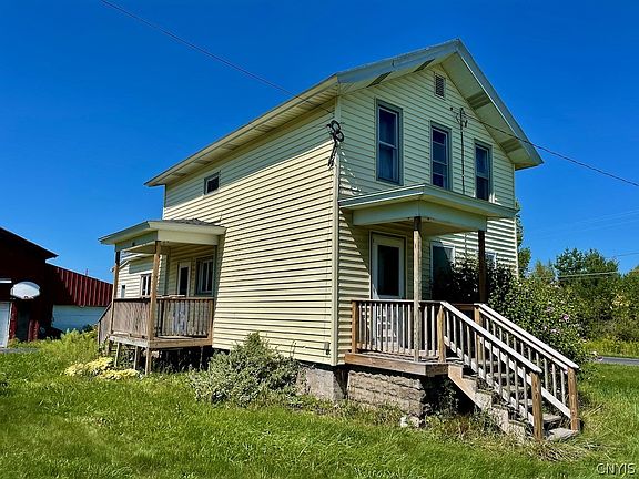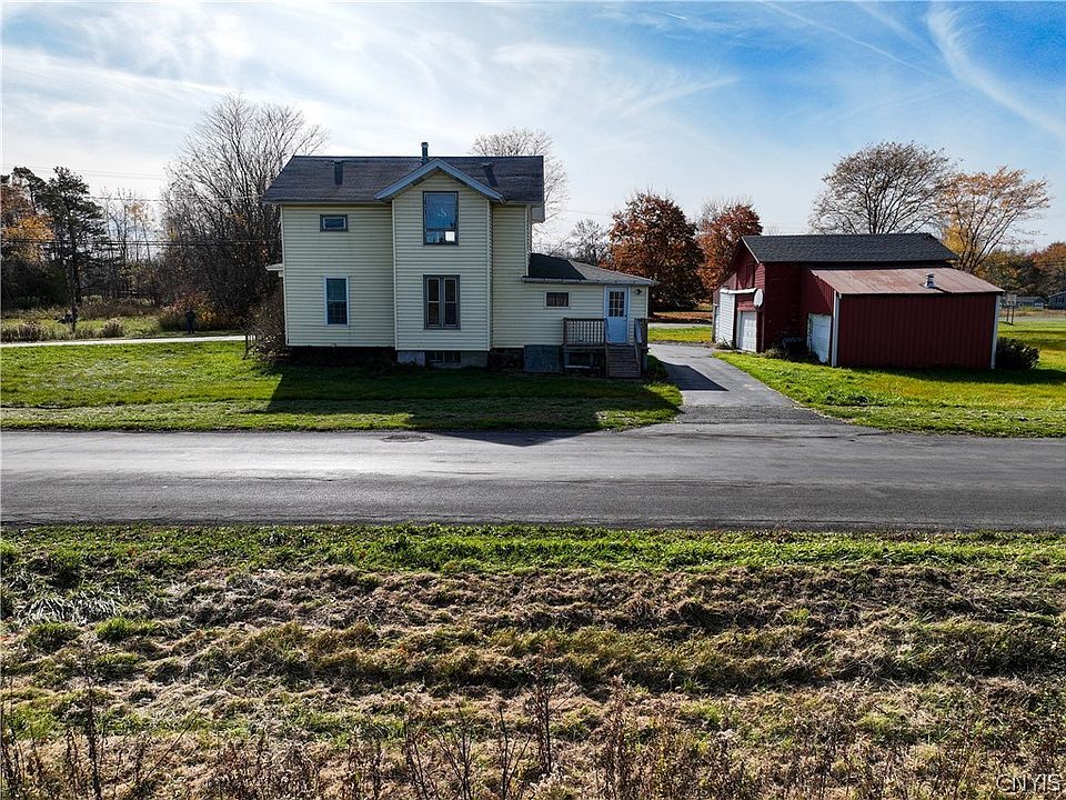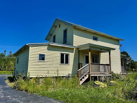 Huge country home located just outside of the Village of Hannibal on a corner lot. This is a 3 BR , 1 1/2 2 story home w/ 1624 sq ft of living space. Hardwood flors throughout Detached garage/outbuilding with 3 overhead doors and a man door to store all your equipment and toys! There is also workshop space and an upstairs for more storage. Full bath on 1st with a half bathroom in master bedroom. First floor laundry, built in cabinets, large Eat-in kitchen and a dining room. Dishwasher ands range convey. Property is being sold As Is.