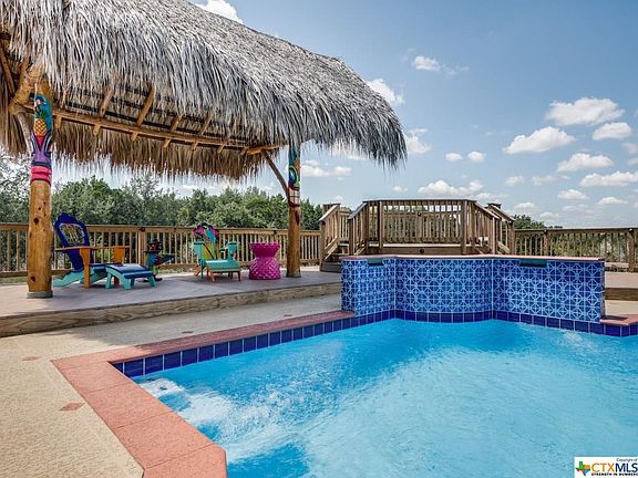 Fabulous pool parties coming soon in this wonderful traditional style home complete with surrounding patio and cabanas. Keep the party going with outdoor lighting and music while overlooking your 3.5 acre spread. Amazing 8" crown molding, 8' doors, stunning ¾" oak floors, 10'-12' ceilings, plantation shutters, pocket doors, and spacious closets. Elegant formal living and dining. Granite counters, maple island, 6 burner Décor freestanding range, Sub-Zero fridge. Two fireplaces. Split floor plan with spacious master suite, his/hers closets. Oversized 3 car garage. Second master suite that has been converted to a home theater with reclining chairs, projector, screen, receiver, DVD player and speakers. Recirculating instant hot water. Since 2012, upgrades include: freshly painted inside and out, new metal roof, LED lights, outdoor lighting, extended sundek patio, 20x40 Gary Pool withHayward Omnilogic controller, cabanas, Jacuzzi spa, 2 new A/C units, and more. Comal ISD. HOA River Park.