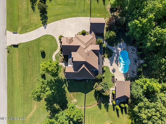Next to Collierville, TN but in the peaceful, country setting of Barton Mississippi ~ IMMACULATE, Like-NEW Custom, Luxury, 100% Updated, Fully-Furnished Home nestled on a gorgeous 1.7 Acre Lot with Pool, Cabana, Outdoor Living, Terraced Sun Deck, in an idyllic setting... a Back Yard Paradise you must see to believe ~ Unmatched natural beauty with extensive professional landscaping all around offers great privacy ~ NEW driveway can accommodate RV parking leads to 2-Car Detached Garage and a 2-Car Attached Garage ~ Curved walkway to a front porch with impressive stacked stone entry to Double Iron Doors ~ 2-Story Foyer with upgraded chandelier and LVP wood floors throughout to an open Formal Dining with Heavy Trim, Plantation Shutters to the Great Room with 18 foot ceilings, stone FP with Built-In Bookshelves and Cabinets, upgraded lighting, and 2-story windows offering natural light ~ Open and Split Floor Plan with updated Kitchen featuring Quartz counters, Peninsula Island, Center Island, Professional faucet, Walk-In Pantry, custom cabinets with drawer stacks, Gas Cook-Top, Decorative Vent Hood, backsplash, Stainless Double Wall Ovens, Wine Fridge, and Side-By-Side Fridge ~ Breakfast Area offers panoramic views, custom lighting, and Iron Double Doors to the rear covered porch ~ Primary Suite on the rear with Security Keypad, WiFi Thermostat, double tray ceiling with crown molding, CF, Sitting Area, LVP wood floors, 2 Walk-In closets with wood shelving, and Updated Primary Bath with High Ceilings, Porcelain floors, 2 Quartz vanities with drawer stacks, updated everything, NEW Soaker Tub, upgraded faucet, Stacked Subway Tile Shower with Frameless Glass, Dual Heads ~ Bedroom 2 on opposite side with Ceiling Fan and arched double window across from Bathroom 2 with furniture vanity and subway shower ~ Mud Area with Cubbies and Charging Station just off the Garage Entry and Hallway to Laundry Room with Built-In cabinets, Sink with upgraded faucet, Hanging Rod, Folding Counter, Broom Cabinet, Washer & Dryer ~ Upstairs find Vaulted Bedrooms 3, 4 and a Theater Multi-Purpose Room with 2 Full Bathrooms ~ Welcome outside to a Back Yard Paradise with 30 foot Covered Porch with AR Fieldstone, stepping down to an extended patio and Terraced Sun Deck with Wood-Burning FP, overlooking an Inground Heated Saltwater Pool with water features, Cabana with Outdoor Kitchen and Pool Bath... all surrounded by beautiful landscaping and mature trees. Additional features: FULLY FURNISHED... everything included!!! WiFi enabled smart thermostats, Ring Camera System, Crown Molding entire house, Wood Shelving, ADT Security System, Extensive Landscaping all round (front and back), Full Irrigation System, Brick landscape planters, Exterior Security Lighting, landscape lights, Digital Locks, French drains, Pool Cleaner, Storm Shelter, Whole House Generator and more...