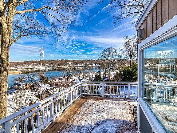 For-Sale-By-Owner: contact Michael at 631-662-1529 Enter this one-hundred-year-old home and enjoy wrap around windows with beautiful views from all floors. The large open living room is complemented by original hardwood floors, and a built-in wall unit surrounding your marble encased wood burning fireplace. There is also a beautiful wrap around wood deck off of the living room sliders ideal for social gatherings. There is a very spacious master bedroom with newly installed plush carpeting, an ensuite bath with a shower/tub combo, large closets and a small bonus room that could be used as a dressing room, nursery, office, etc. The master bedroom is on a separate floor from the other 3 bedrooms for complete privacy. Two smaller bedrooms also newly carpeted, share a half bath on the top floor. Rooms have nice closets with bonus storage in the attic space behind the closets. Little storage nooks and drawers built into the wall give these rooms charm and uniqueness. The ground floor has a newly renovated kitchen with quartz countertops, tile backsplash, and brand new tile floors. The long peninsula countertop in the kitchen easily fits 4-6 barstools for in kitchen dining. This floor also has a dining room, a fourth bedroom, a full bath, enormous walk-in cedar closet, sizeable pantry, and a large laundry room/boiler room with large washer and dryer complete with matching storage pedestals. Sliders open from the windowed dining & family room, opening up to 2 large patios with brick colored pavers, and can easily accommodate BBQs, lounge chairs, outdoor dining table, bar, etc. Presently right outside the sliders sits a well maintained 8-10 person hot tub with powerful jets and underwater lighting. The side of the house has a large spacious storage shed. This charming home has plenty of privacy from lovely neighbors as it is surrounded by lush foliage and estate fencing. An exciting added bonus… Enjoy a very short stroll to the Acclaimed Huntington Beach Community Association beach. This is a privately deeded community beach complete with dock and boat ramp for your fun boating experience! (Contact Michael Bertash 631-662-1529)