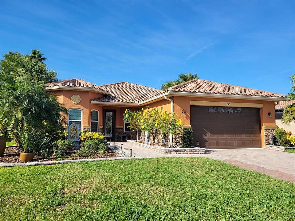 Fabulous Melody Model on a Premium Lot with Water Views & in Walking Distance to the Solivita Village and 2 houses away from the Lago Vista Pool & Clubhouse . This Home was a Builder’s Model with an Exceptional Covered Lanai Added by the Homeowners in 2013. Enjoy the exterior features Starting with the Stacked Stone Front Elevation, Glass Entry Door, Concrete Tile Roof & Lush Landscaping. You’ll be Delighted when You Enter this Home to the Stunning View Through the Large Living Room to the Enlarged Covered Lanai and finally through to the Pond. The home flooring includes Oak Wood Flooring through the Living Area & Kitchen, Upgraded Berber Carpet in Bedrooms, Ceramic Tile in the Baths & Laundry and Italian Tile in the Florida Room & Covered Lanai. The Gourmet Kitchen Features Nearly New Stainless Appliances, Upgraded Cabinets, Crown Molding, Pull-Out Shelving, Farmer House Sink, Custom Shelved Pantry & a Large Breakfast Nook with Bay Window. Other Features Include a Built-In Entertainment Center in the Great Room; En-Suite Master Bedroom With Bay Window, Tray Ceiling, Crown Molding & 2 Custom Closets; Master Bath With Upgraded Tile Shower &n Dual Vanity Sinks; Custom Bookcases/Computer Station in the 3rd Bedroom/Den; the Enclosed Florida Room with Italian Tile Floor expands the standard Melody floorplan to 2068 Square Feet; Large Laundry Room with Newer Washer & Dryer, Built-In Desk & Cabinets. All Custom Window Treatments, Appliances, Fans & Light Fittings Included. The 646 Square Foot Covered, Screened Lanai with Italian Tile Flooring is the Home Showpiece. It Features a Cathedral Ceiling, Solid Roof, Italian Floor Tile, Pull Down Shades & 3 Ceiling Fans—Just A Great Space To Entertain Family & Friends! Additional Features: High Efficiency Lennox HVAC with WiFi Thermostat, New Windows Throughout, Wrought Iron Fenced in Back Yard, Additional Insulation in the Attic, New Side Roof Gutters, Built in Seating on Back Patio, New Garage Door Opener, Epoxy Floor in Garage, Widened Pavers on Driveway. 55+ Gated Golf Community of Solivita offers an Impressive Array of Amenities: 2 PGA 18-Hole Championship Golf Courses, 2 State of the Art Amenity Centers, 14 Community Pools, On-Site Restaurants, Tennis & Pickleball Courts, Playground, Dog Park & over 200 Specialty Clubs. Near the New HCA Florida Poinciana Hospital & the 42,000 Square Foot Medical Office Building. Also near area Supermarkets, Restaurants, Pharmacies, New Express Way and Sun Rail Poinciana Station. Located just 25 minutes to Walt Disney & Major Attractions. Keep in mind that at least One Resident must be 55+ or older to live in this community. Don’t Miss the Opportunity to Live in this Amazing Home in the Best 55+ Community in Central Florida! Call Today to Schedule your Private Tour!