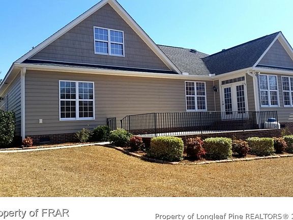 -Beautiful 3100 sq. ft. home on the golf course in Carolina Trace.Lower level features gorgeous kitchen with granite counter tops, built in wine rack, maple cabinets,double sink in island, ss appliances, formal dining room, great room with fireplace, cheerful sunroom, 2 master suites, huge walk in pantry, hardwood floors, whirlpool tub, sitting room in one master, second level has bedroom, separate reading area, full bath, and a bonus room. 2 car garage plus golf cart garage. -Very nice concrete deck with wrought iron on back of home, concrete driveway and walk way.New front door just installed. Beautiful views of golf course, short distance to Country Club and security gate. Home has lots of curb appeal!!