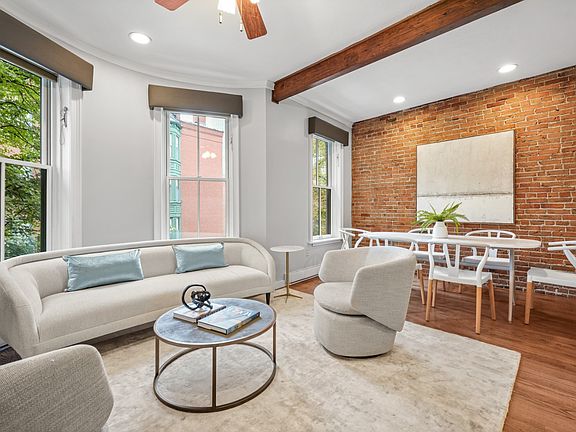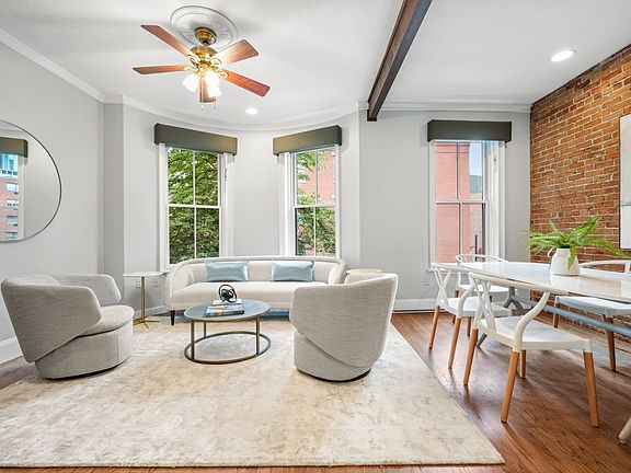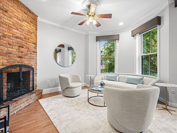 Upper floor one bedroom located on a prime block of West Canton Street in the heart of South End: Bow-front living/dining room with corner fireplace and designated dining area. Galley style kitchen with walnut stained cabinets, stainless appliances and quartz counters. Sun-filled master bedroom with 3 windows offers walk-in closet and location/room to set-up a home office. Other features include hardwood floors, exposed brick, crown molding, washer/dryer combo and renovated tile bath with shower.
