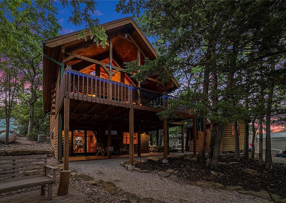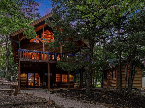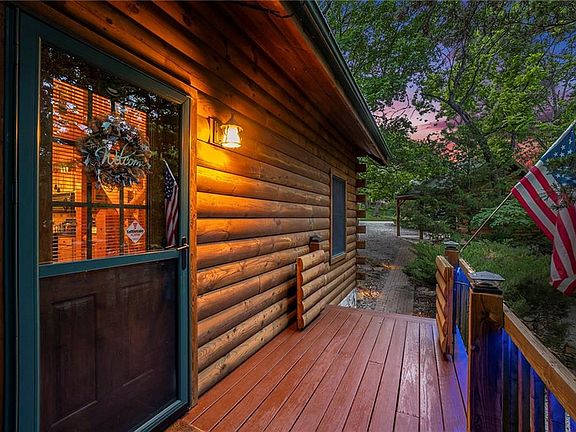 This custom-built, lake front log cabin is in the sought after Sugar Valley Lakes neighborhood, and was featured in Log Home Living magazine! Situated on the main lake, with approximately 70’ of lake frontage, there’s plenty of room to enjoy everything the community has to offer. Enjoy the lake whenever you want to get out of the city or choose to live here year-round! This log home embodies the lake life and has a cozy living room fireplace. Upstairs you'll find a gorgeous primary suite with walk-in closet, and bath with double vanity. The walk out lower level has extra entertainment space including a bar, plus it has a Murphy bed for extra overnight guests. All appliances and most furniture remain with the home. On the back of the home enjoy waterfront views from the covered decks or covered patios. Outside you’ll find a matching guest bunkhouse, a separate covered parking structure, and a double decker dock. The private dock includes a canoe and paddle boat. Fish to your heart’s content at SVL. No fishing license is required in this private lake community. Boats (< 22’), pontoons (< 28’) and personal watercraft are allowed on the lake. HOA amenities include 9-hole golf course, a swim beach, pool, and club house with food and drinks at the Sugar Valley Grill. Stores, groceries, and restaurants are conveniently located just minutes away within Mound City. This secluded area is a great escape from the city and is only one hour south of the Kansas City area. It’s perfect for weekend get-aways!