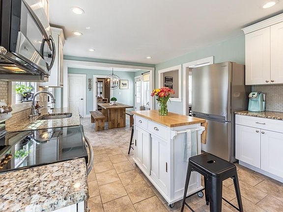 WELCOME HOME~ CUTE AS A BUTTON ON THE OUTSIDE & EVEN BETTER ON THE INSIDE! 2 MIN WALK TO TRAIN!!! No detail has been left unturned, & old world meets new in a seamless way! From the FRONT PORCH where you can relax w/ a cup of morning coffee made in your NEW CUSTOM KITCHEN w/STAINLESS & GRANITE, plus huge dining space, or the backyard w/New Patio, entertainment area & fabulous yard space this home has it all!! Nearly everything has been updated, Recent ~ MG HALL Addition on the first floor. NEW 1st FLOOR LAUNDRY/BATH. Tons of storage! The home looks as if it was picked directly out of a Pottery Barn Catalog! Situated nearby everything, this home is a COMMUTERS DREAM yet spacious enough to enjoy for years to come! Featuring 4/5 generous sized bedrooms or additional office space, a detached 2 CAR GARAGE, Gorgeous custom MARBLE BATH w/double sinks & MUCH MUCH MORE, DON'T MISS OUT! It's only 12 miles from Boston and you can walk to the commuter rail! Newer Roof, furnace and window