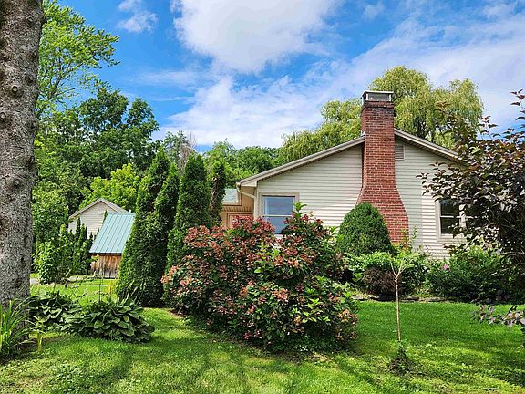 If you're interested in moving to town, walking to all that this lovely village has to offer, consider this property. The efficient two-bedroom house with a full basement and large screened porch shares a .69+/- acre lot with a small apartment (fasioned from a former garage) that currently rents for $1200/mo. The main house has a nice kitchen, large living room with a woodburning fireplace and oak floors and two nice bathrooms. There is onsite laundry and storage space in the full basement. The detached apartment is two rooms: kitchen/living room and a bedroom with a full bath and laundry area within it. Just outside the sliding door is a deck where you can enjoy the outdoors and the lovely yard. A small garden shed, front porch and minimal maintenance yard round out the features of this property. Sidewalks will take you right into town, no need for a car but if you do have one, plenty of paved driveway for you!