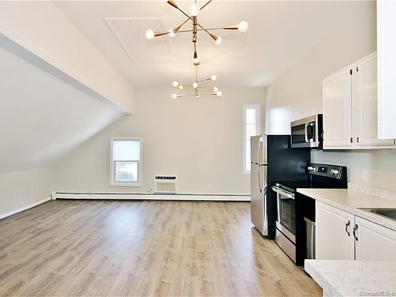 FULLY RENOVATED 1-Bedroom Apartment with Private Entrance - HEAT and HOT WATER INCLUDED! This bright and sunny 1-bedroom, 1-bath unit features a private entrance and has been fully renovated to provide a modern, comfortable living space. Step into a welcoming entryway/mudroom area with carpeted stairwell leading to an open-concept living space featuring high ceilings, built-in AC, and contemporary lighting. The spacious living room and updated kitchen boast new stainless steel appliances (refrigerator, electric stove, built-in microwave), sleek countertops, and beautiful laminate flooring. The bedroom provides plush carpeting, a ceiling fan, walk-in closet, and its own window A/C unit. The bathroom has been completely updated with new tile work, sleek fixtures, a chic vanity, and modern lighting. Additional features include a dedicated/assigned parking space, easy access to major highways (I-95, Merritt Parkway), and proximity to Stew Leonard's, restaurants, and public transportation. Heat and hot water are included; Tenants are responsible for electric and cable/Internet. ONLY 1 MONTH SECURITY DEPOSIT required. Landlord prefers 2 year lease. Available October 1. No pets and no smoking.