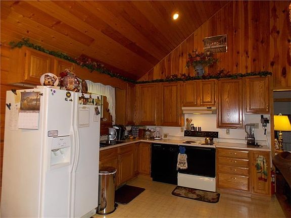 Private! This 3 bedroom log home is nestled at the end of a long, wooded lane on 10.87 beautiful acres! Open floor plan-Nice room sizes-Cathedral ceilings-Living room w/hardwood floors, 2 story cathedral ceiling & woodburning stove-Charming dining room w/cathedral ceiling/Fully equipped kitchen w/window sink to enjoy the outdoors-Master bedroom suite w/cathedral ceiling, walk-in closet & roomy powder room-Beautiful woodwork-Garage w/opener-Central air-Deck-Wonderful front porch with a view that won't disappoint-7 stall barn w/water, electric & riding area-Shed-Plenty of nature-Home warranty