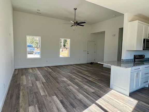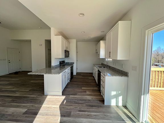 Beautiful New Construction Home. This charming home features 3 bedrooms and 2 full bathrooms. Open living room to breakfast room area. High ceilings in living room. Kitchen with white cabinets, granite countertops and stainless steel appliances. Small eat-in area at end of kitchen bar. Large master bathroom, lots of closet space, coat rack at entryway. Laundry room on hallway. Pantry in kitchen. Wood deck, large lot.