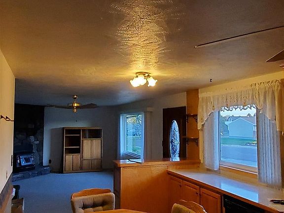 - Fireplace features: wood stove