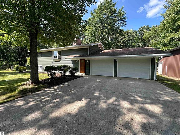Fantastic setting and location for this beautifully updated 4BR 2 bath bi-level, just minutes from Farwell and the expressway. Situated on 3 lots this property feels like your in the country with a private back yard 11 apple trees, mature grape vines, designated fire pit, 24x32 finished and heated pole barn with electric, fenced in yard, large deck for entertaining and 2 sheds for a little extra storage as well as a fenced in garden area. Inside this home you will see many updates such as granite counter tops and new back splash all new appliances and custom cabinets, new flooring all through out, new sliding glass doors, windows and siding.