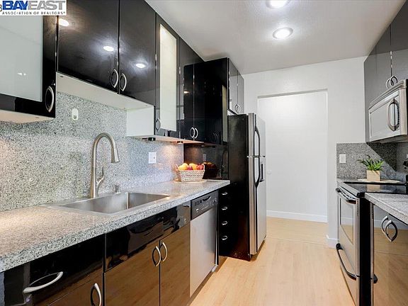 Remodeled & Bright 2 bed 1 bath condo situated in the heart of Fremont! In-Unit Laundry. Freshly painted, new baseboards & fixtures throughout. Designer inspired kitchen, expansive rooms, beautiful patio overlooking Lake Elizabeth Park. Newer washer/dryer included. Fantastic Location! Walking distance to Fremont BART. Close to Fremont Library, Whole Foods, 880, 680, Tesla. HOA includes water, trash, community pool, covered parking, & tons of green space. Tour this move-in ready condo before its gone!