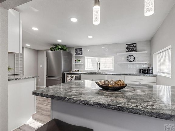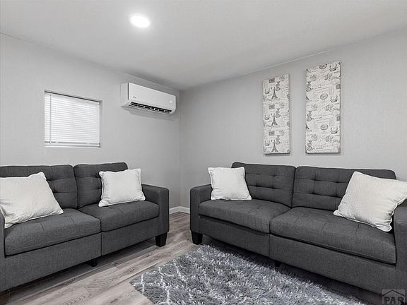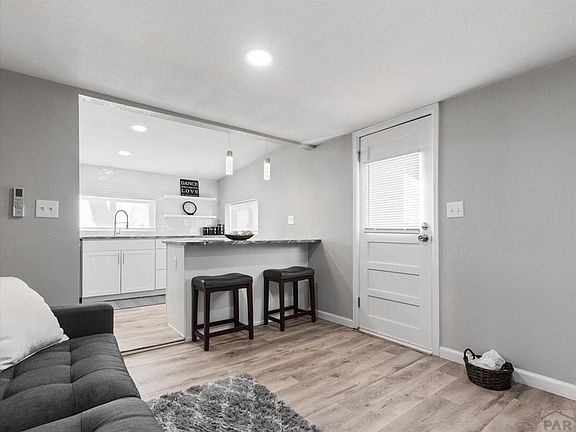 Absolutely ADORABLE home on Pueblo's southside! Join the masses of people wanting a TINY home (extra feature is the 185 square foot basement-bonus!). This home is as close to new construction as you can get with lots of upgrades. Such as a new electrical system with upgraded LED lighting and new light fixtures. New plumbing with a new water heater, new plumbing fixtures, bath tub, toilet and the cool neon/LED bath mirror. New heating and cooling system (mini splits). New vinyl windows, new insulation, drywall and texture. New interior 2 tone paint. New interior doors with new hardware, new flooring, new granite countertops, new kitchen cabinets with a modern flare shelving with subway tile backsplash. New stainless appliance package, new stackable washer and dryer. The kitchen has a kitchen island with sleek design pendant lighting. New roof, gutters and downspouts, new stucco, new concrete, new landscaping. New privacy fenced with an enclosed backyard. All permits through Pueblo Regional Department. The lot size is great to add a garage, carport and additional front parking. Lots of space to house your favorite toys such as an RV, trailer, boat, etc. The driveway depicts the space to have approximate 5+ vehicles. Conveniently located near major roadways and area businesses as well as St Mary Corwin Hospital. Home is perfect for a first time homebuyer, downsizing buyer or an investment for your nurse tenants! Lots of possibilities. Schedule today!!!