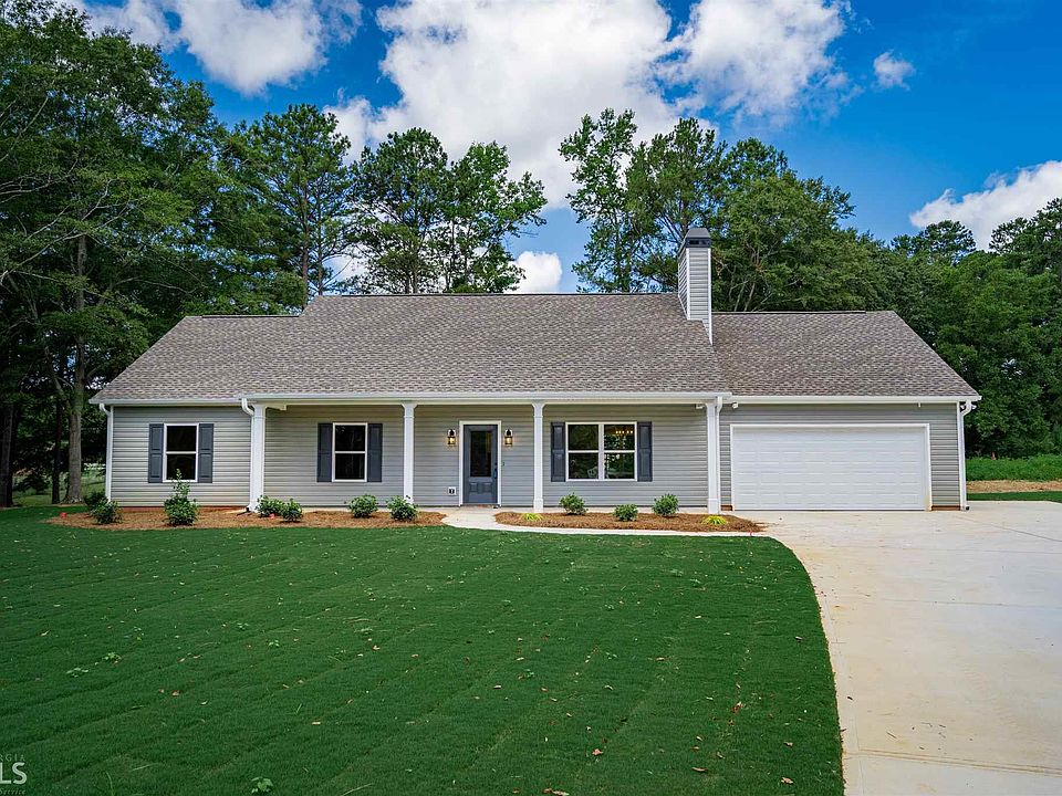 This graceful design contains a surprising amount of space. A friendly rocking chair front porch opens immediately to an impressive open concept living space with large great room with fireplace.The kitchen and dining, opens to the great room, large island and tons of kitchen cabinets. Large Laundry room. Relax in the owners suite's luxurious garden tub or unwind in the large shower. An oversized walk in closet.Two generous size secondary bedrooms share a full bath.Two Car garage. Located on a nice one acre homesite in a cul de sac. Home is currently under construction