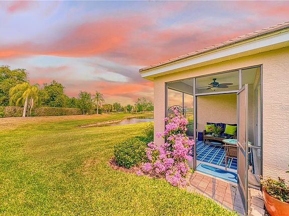 WATERFRONT LUXURY. Peace, Quiet & Tranquility. Mornings will take on a new meaning as you open your POCKETED SLIDING GLASS DOORS to enjoy your morning coffee and water views from your SCREENED LANAI. Watch carefully as you might see a family of deer, a Pelican, Egret or Blue Heron. This stunning OPEN FLOOR PLAN VILLA is perfectly positioned on a premium lot and is tastefully amenitized! The owner spared no expense on quality with over $22K in customization/upgrades including but not limited to: Plantation Shutters, Cullligan Reverse Osmosis Water Purification System, Electronic Air Purification System, Nest Smart Learning Thermostat, Upgraded Lighting & Plumbing Fixtures. The large Kitchen is complete with GAS STOVE, LARGE GRANITE ISLAND and STAINLESS APPLIANCES. The Average Utility bill in this home is less than $50 per month! When it is time to unwind, slip off into your large Master Bedroom with Room Darkening Window Treatments! The Master also features spacious Bathroom Suite, Walk~In Closet with Custom Shelving and the list goes on! Eagle Trace is one of the most sought after MAINTENANCE FREE COMMUNITIES in the LAKEWOOD RANCH area. A private gated community featuring RESORT STYLE POOL, SPA, PICNIC AREA with Gas Grill and TENNIS COURTS. The neighborhood also includes DOG PARKS, one each for small and large dogs. There are NO CDD fees, while still benefiting from the conveniences of being located next to LAKEWOOD RANCH, the country's top selling master-planned community. Only minutes to the world's most beautiful GULF BEACHES. This home is also conveniently located to Sarasota's Downtown, Arts & Cultural Districts. A complete furniture and fixtures package is available under separate contract. Tour it! Love it! Own it Today!