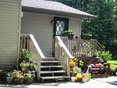 10 wooded acres. Detached garage. Open floor plan with Vaulted Ceilings. 5 Bedrooms & 2 Full Baths. 1st floor utility & 1st floor master bedroom. Hardwood floors.
