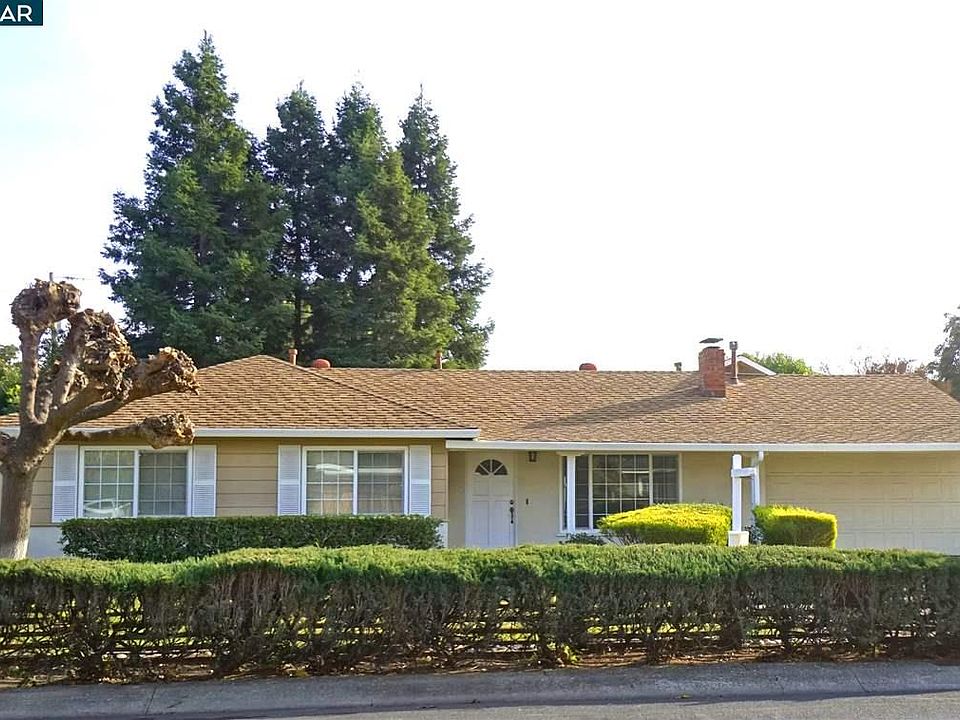 Spacious traditional rancher. Remodeled kitchen with oak cabinets, gas cook top, wall oven and space for microwave. Family room with fireplace for those chilly evenings. Additional fireplace in living room. Pocket doors, dual pane windows, recessed lighting, pull down ladder for attic storage; expanded driveway. Secluded back yard with beautiful redwood trees, pergola and bird bath. Three large storage sheds. Well located near Costco and highway 680.