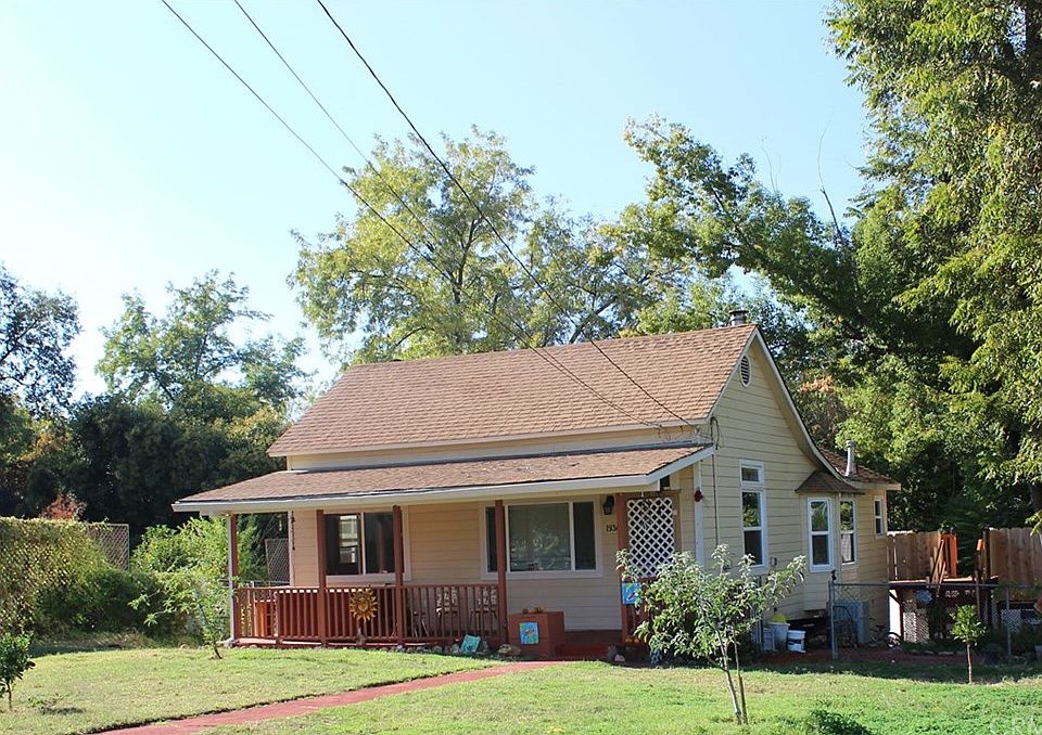 When you're not fishing in the Feather River, hang out in your own backyard oasis! Enjoy city conveniences and easy living in this 3 bedroom/1 and a half bath home. Tall ceilings, laminate flooring, kitchen bay window with seating storage, freestanding wood fireplace in living room, french doors, stained glass and built-in china hutch. Stainless refrigerator, stove and dishwasher; dual-paned windows. Large front yard with a fruit cocktail of young trees: apple, cherry, orange, mandarin, peach, plum, lemon, lime and pomegranate. Landscaped side and backyard for entertaining. 3 year old sewerline with 25 year warranty, 1 year old "Home and Garden Spa", 10x12 "Old Hickory Shed" and 15 x 30, 4' deep above-ground pool on frame with 60 year warranty with decking. County records show this is a 2 bedroom, 2 bath home of 1087 sq. ft. Buyer is advised to verify square footage, bedrooms and bathrooms to satisfy themselves.