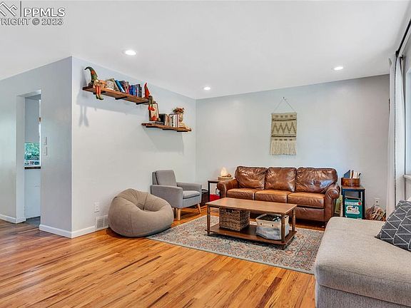 Welcome to this beautiful 4 bedroom, 3 bathroom residence nestled in the charming neighborhood of Pikes Peak Park. As you cross the threshold, you'll be greeted by beautiful hardwood flooring, seamlessly spanning the main and upper levels, creating a warm and inviting atmosphere. This home showcases an excellent layout, featuring a spacious family room, a gracious dining area, and a well-equipped kitchen on the main level. The kitchen is a chef's delight, boasting stainless steel appliances and butcher block countertops that add both style and functionality to the space. Venturing upstairs, you'll discover a welcoming owner's suite, accompanied by two additional generously proportioned bedrooms. The lower level/basement offers a versatile family room, making it perfect for various uses, while also providing an additional bedroom and a bathroom. The convenience of the adjacent laundry area makes everyday living a breeze. Step outdoors to a Colorado dream, where you can enjoy breathtaking mountain views from the spacious deck. The fully fenced backyard offers a haven of tranquility and privacy, perfect for both relaxation and recreation. What truly sets this property apart is the generous lot size, an impressive .18 acres or 7,912 square feet, surpassing the average in the neighborhood. This home also features new windows, a newer furnace, and an upgraded electrical panel, providing added value and peace of mind to the discerning homeowner.