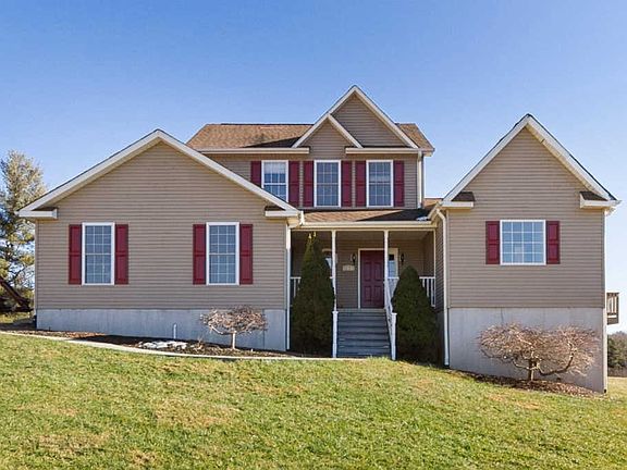 With over 3,100 square feet of living space, this 4 bed, 4 1/2 bath home is situated on an expansive 7.46 acres! The main level features the master suite and laundry area. The dining room and eat in kitchen area has refinished hardwood flooring. You'll find three nicely sized bedrooms on the carpeted upper level. The partially finished basement can be utilized as a family or recreation room. Enjoy the beautiful mountain and creek views from the large deck! Property has Brush Creek running on the edge of the property. Newer heat pump for the main and upper level. Schedule a tour of this home before it's gone!