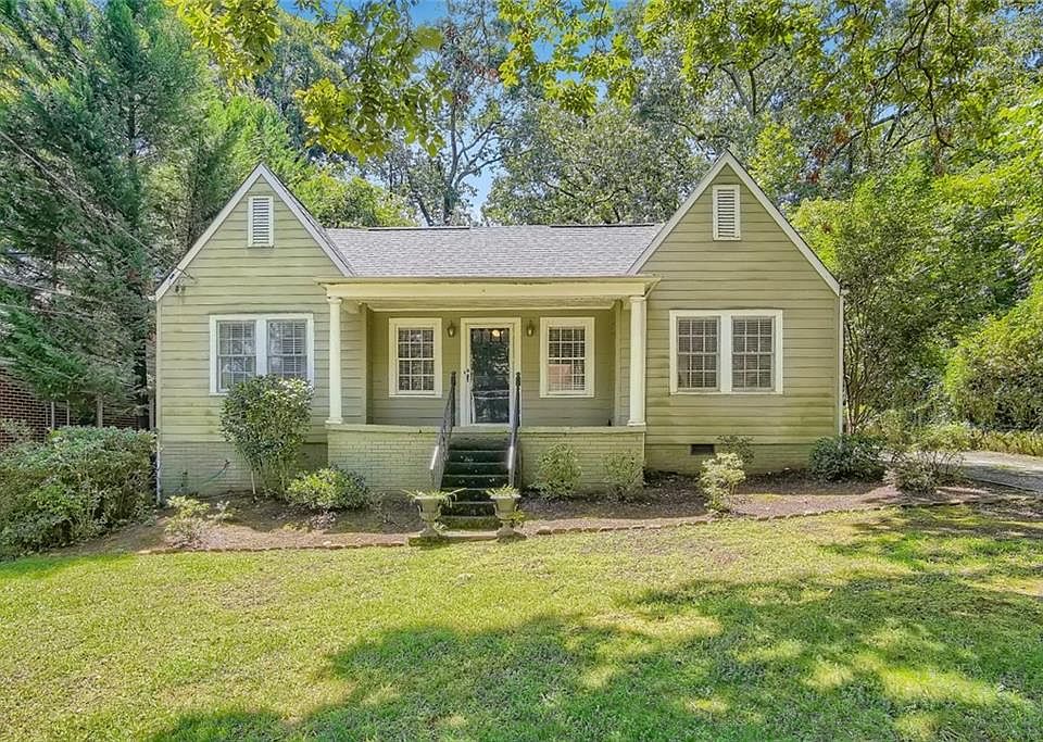 Cozy cottage style home nestled on a beautiful wooded lot. 3BR/2BA. Gorgeous hardwood floors throughout, arched entryways, built-ins, stainless appliances, granite countertops and so many more features make this home unique! Entertain fireside in the formal living room or GATHER in the spacious eat-in kitchen. Snuggle by the fire in the family room that is beaming with tons of natural light. Separate dining room could be used as an office. Large primary bedroom features a private tiled bathroom with an oversized walk-in shower. Sizeable secondary bedrooms and a full bathroom. Enjoy outdoor living on the rocking chair front porch or on the patio overlooking the backyard's private sanctuary, including a courtyard with a fountain, a pergola and tons of trees for shade and relaxation. Two car detached garage with two new garage door opener's and frames being installed this September. This home is a must see!!! Close proximity to shopping, dining, entertainment, InterstateI-85 and Hartsfield-Jackson International Airport! This home is a must see!!! Click the Virtual Tour link to view the 3D Tour. Property is estate owned, however, all docs are in place and this should not effect closing time. New garage doors and openers to be installed September 1 with transferable warranty. Please provide a minimum of a 2 hour lead time before showing.
