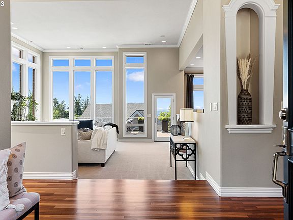 Seller carried financing available, please inquire with listing agent! Main level living at its best! Stunning valley views from Cedar Ridge with sophisticated quality, detail, and construction. An entertainer's delight with a dramatic entry and chef's kitchen. Custom paneled and high end SS appliances, an additional sink for prep work, and a 5 burner Dacor cooktop. Open great room floorplan with gas fireplace, new cozy Fabrica carpeting, and floor to ceiling windows. Expansive deck encased w/glass railings, will host crisp mornings with coffee or many dinners al fresco. Primary suite on main, with newly remodeled ensuite bath and large walk-in closet. A true work space w/double door entry, the office features new moody blue paint, picture frame wainscoting, and high quality Stanton carpet. The daylight lower level features 3 beds, spacious full bath, large family room w/beverage bar, and newly finished theatre room, making this area of the home perfect for kids, teens, guests, or casual relaxing. It opens to the newly expanded covered patio with enough space for chaise lounges and ping pong tables. The yard was completely relandscaped, adding a new irrigation system, custom colored lighting, and new mortared brick walls & walkways to compliment the aesthetic of the home. Close to parks, restaurants, Amaterra Winery, Downtown, & Nike/Intel, making this quite the show stopper! [Home Energy Score = 4. HES Report at https://rpt.greenbuildingregistry.com/hes/OR10066755]