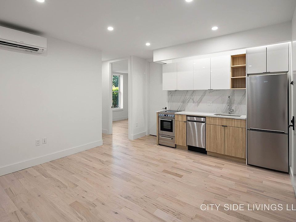 NO FEE!! BRAND NEW LUXURY 3 Beds / 1.5 Baths DUPLEX !! PRIME Ridgewood/Bushwick! Unit features: IN-UNIT WASHER & DRYER, open living dining space, Large bedrooms with closets, Designer marble kitchen , central AC / Heat, DISHWASHER, Tons of natural sun light, Fully tiled designer Bathroom with Deep soaking bathtub, strip hardwood flooring, super High ceilings, extra soundproof for quiet comfort and living , outdoor shared space to courtyard, video intercom system, and more !! BRAND NEW LUXURY BUILDING with Manhattan skyline views and High End Finishes!!. A unique new building offering rooftop access, Laundry room, backyard access, security camera systems, safe delivery drop off! Ridgewood is a neighborhood known for its vibrant arts and cultural scene, with a thriving community of artists, musicians, and young professionals calling it home. Situated at the border of Bushwick and Ridgewood, residents will enjoy access to a vibrant neighborhood offering unique dining experiences, renowned breweries, artistic venues, parks, and seamless access to public transportation. This prime location allows for easy immersion in Ridgewood's rich cultural offerings while benefiting from the amenities and attractions of Bushwick. Conveniently steps from the L & M train!! Guarantors or welcome ! Schedule now to view!