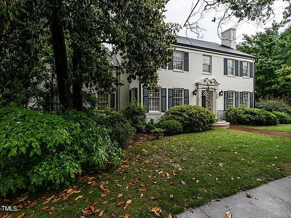 Step into timeless elegance with this classic Georgian-style home in the heart of sought-after Hayes Barton. From the moment you're welcomed by the gracious foyer and sweeping staircase, you'll feel the charm and craftsmanship that define this two-story residence. Beautifully proportioned living and dining rooms are perfect for entertaining, while rich hardwood floors, soaring 10-foot ceilings, heavy moldings, and four fireplaces with stunning historic marble mantles speak to the home's enduring quality and detail. The living room and private den flow seamlessly into a light-filled sunroom that offers peaceful views of the landscaped yard. Don't miss the attached Accessory Dwelling Unit (ADU)—ideal for guests, rental income, or a private home office.