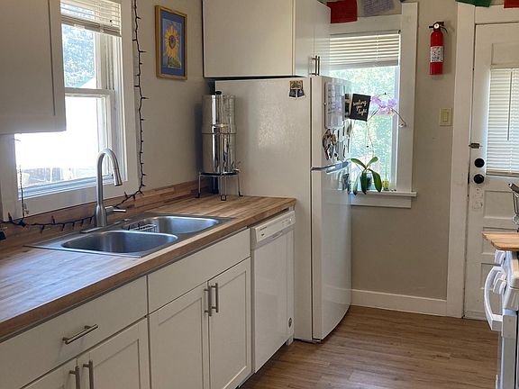 Back deckOriginal trimNewly remodeled kitchenHardwood floors