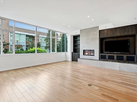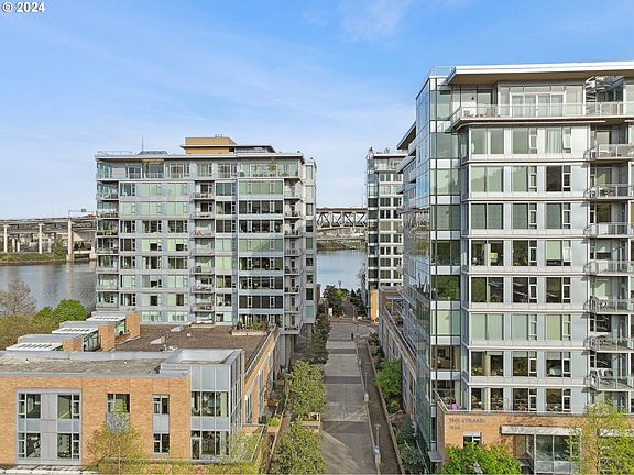 Great big, end townhome with light from multiple sides. Like new with fresh paint done to perfection on the ceilings, walls, trim & doors make this move-in ready! Spacious & light-filled with convenient street access & indoor access to the common areas & garage. Oversized rooms, high ceilings, huge windows with motorized shades on the main level, wide plank wood floors on the main level & quality built-ins are found throughout providing plenty of room for living & entertaining. Two patios: one off the front entry & one off the dining room. Open gourmet kitchen with a built-in banquette with tons of storage, an island, gas cooktop, & stainless steel appliances created with plenty of elbow room & conversation areas in mind. Upstairs the huge primary suite with treetop & city views, large walk-in closet, a luxury bathroom with windows, a double sink vanity, & a separate tub & shower. The 2nd bedroom, full bath & large laundry room all live like a private home. The den on the main level has a wall bed and can be used as additional guest space with an adjacent 3rd full bathroom also conveniently located on the main level. Enjoy nearby restaurants, cafes, South Waterfront Park, the Riverplace Marina, the Streetcar & easy transit to downtown & OHSU. The deeded parking space has an EV charger & a mechanical lift to accommodate two cars. The Strand is made up of 3 buildings, each with their own lobby & elevators. The concierge is in the North building and serves all the residents. Incredible value at $284/SF!