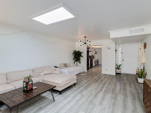 Welcome home! Tastefully updated Townhome in a wonderful location. This home features a newer AC (2019) Quartz countertops, wood-look flooring, master and guest baths fully remodeled, crown molding and large baseboards throughout, wood burning fireplace, private backyard with covered patio. Two car garage with epoxy floor. Recessed lighting has been added to kitchen for extra light, as well as a new window in living room. Community pool just steps away. CENTRALLY LOCATED near access to US 60 and 101 freeways.