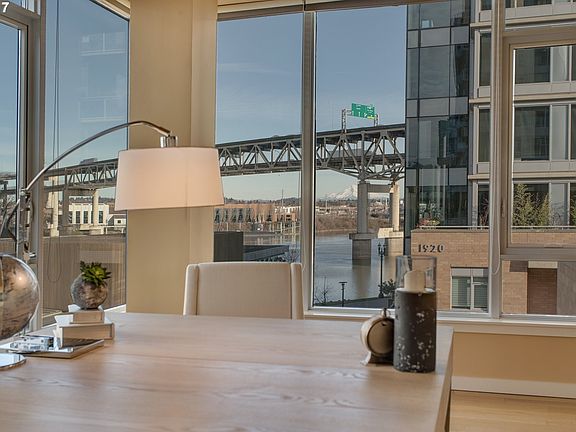 Exceptional Strand corner townhouse unit built for entertaining and zoned for Live/Work. Features 2 bedrooms, 4 full baths, and 1,000 sqft upper level flex space with second kitchen and two spacious rooftop patios that take advantage of gorgeous city/river views. Centrally located with walk score of 75 and only a block away from Streetcar NS Line and Willamette River water front. Concierge service and Parking Included. See 3D Tour!