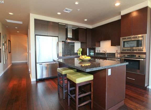Feels like you are on holiday. SW facing corner unit with lots of light. City view, large 1 bedroom unit w/chef's kitchen w/slab granite counter tops & island, stainless steel appliances, separate dining room area, hardwoods, walls of windows, secure deeded parking, extra storage unit, secure building, Concierge Service, 1 block to streetcar, 1 block to Riverplace Marina, walk to restaurants, shops, hotels, theaters and more.