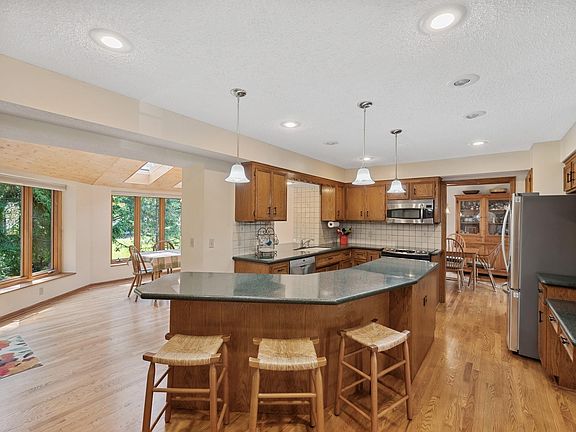 Beautiful and spacious home located on a sizable and wooded lot in Safari Estates. Home boasts an expansive main level with an airy kitchen most Chefs will love, generous dining area with view of scenic back yard, walk-out to spacious deck and next to generous 3-season porch. The upper level has 4 bedrooms including roomy Owners Suite with distinctive 2-room private bathroom. Entertain, relax and/or work in the nice and spacious lower level with roomy pool/rec room & cozy fireplace, bedroom (or office or craft room), FR/Exercise room with walk-out to scenic back yard and great storage. Located near Lebanon Hills Regional Park (great for outdoor enthusiasts) and the Minnesota Zoo (one of many great attractions in Dakota County). This beautiful home provides great access to all that Eagan and the Twin Cities have to offer!