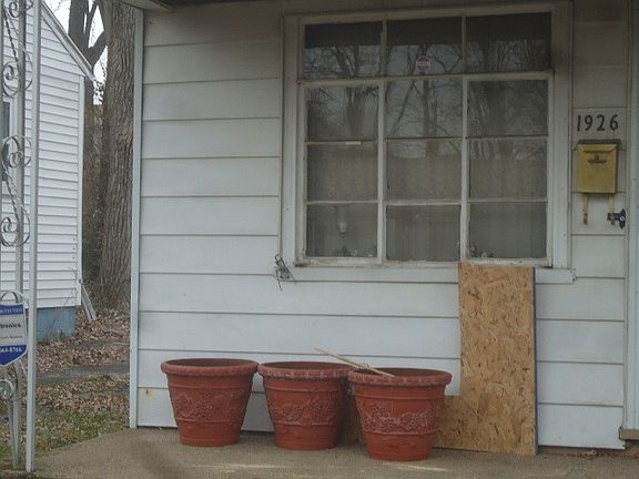 Exterior Features:Curb appeal is good. Siding is vinyl and in good condition. Roof is asphalt shingles in fair condition. There is a paved drive way back to the house. The one car detached garage sets further back with just dirt to get to it. The drive way is a little rough at the entrance. The lot is 5,602 sqft. There is a nice size back yard that is mostly fenced in. Interior Features:This is a 3 bed 1 bath house with 900 sq ft. Flooring is vinyl in the bathroom and kitchen with carpet through out the rest of the house and in fairly good condition. The kitchen is small with a few cabinets that are in good condition and no appliances. There are ceiling fans in two of the bedrooms and the kitchen. The are some cracks and bad spots in the walls. Mechanics are intact and include force air furnace, central air conditioner and hot water heater. The foundation is shifted with a large crack in the block on the wall by the driveway.
