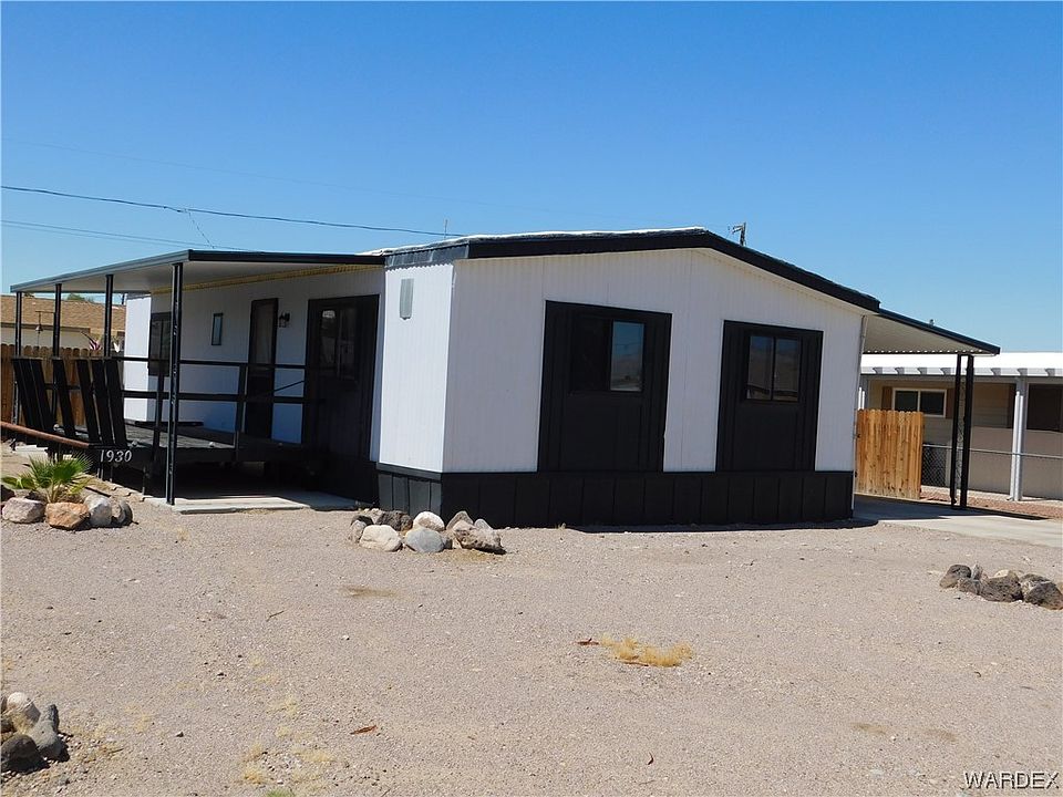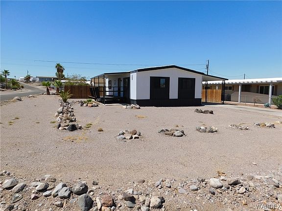 Come & see this Doublewide Manufactured home in Buena Vista, Corner lot, full backyard fencing with nice storage shed. Covered parking, Low Maintenance DesertScape, 2bd/2ba with extra room addition (Could make 3 bedrooms) Needs a little bit of cosmetic TLC. Porch Deck and plenty of RV parking. Centrally located in Bullhead City. Buyer to verify square footage, utilities and flood plain.