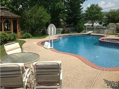 Do not miss this beautiful Colonial home in Salisbury township. So many upgrades including the Gourmet eat-in kitchen with custom cherry cabinet Jenn-air cook top and double ovens. Center granite island and paneled refrigerator. Master bath has just been remodel with large walk in tile shower and 70 gallon soaking tub. Walk in closet added as well. Relax in the back yard with your beautiful inground heated pool with raised hot tub that cascades into the pool. Complete with a gazebo and large deck off kitchen. Plenty of room for outdoor entertaining throughout the summer. Landscaping lights allow you to enjoy the outdoors through the night. You must see.