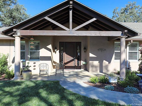 Bring your horses to this amazing 6.5-acre property! This custom-built ranch-style home offers a 3-stall barn, horse turnout, and stunning oak-studded views. On the other half of the barn, there's an added garage and an additional storage room! Inside the house, be inspired by the chef's kitchen with large, stainless-steel, Viking appliances, an industrial sized refrigerator/freezer, and a gigantic island that must be seen to be believed! The master bedroom has a fireplace, large walk-in closet, and beautiful garden tub. In the living room, enjoy cozy winters beside the custom-installed pellet stove while you admire the view through windows that boast upgraded plantation shutters. This home also includes a walk-in pantry, bonus room, and fenced yard. 4th bdrm is being verified through the county.