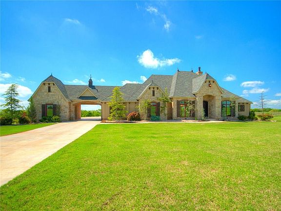Stunning architectural details inside and out- starting with custom iron gates and stone entry. Follow the paved drive to this elegant Country home on nearly 40 acres. Enjoy all the design elements in this home from the custom front doors to triple trey ceilings in the formal dinning, master bedroom and office. Wood beams in living room w/rock fireplace make family space warm and cozy. Chef's kitchen offers double ovens, huge island, butler pantry and kitchen dinning. The master suite offers privacy with a spa master bath w/his and hers closets, safe room, huge spa tub & walk-in shower. Each bedroom has its own private bath w/design elements. Massive bonus/media room w/full bath. Play in this one of kind 30,000 gallon Copper Ion Pool w/water slide, sun deck & water fall. 60 x 65 Barn with 8 -12x12 Stalls. 135 X 150 Arena is nearly completed and pad is built for indoor arena. Fenced & Crossed fenced w/auto waters.