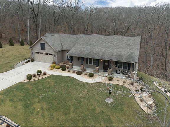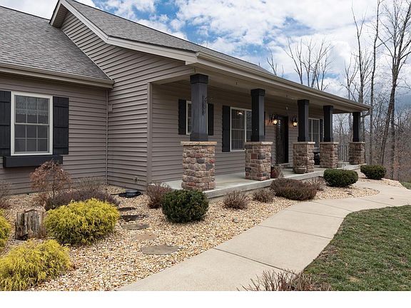 Have you been searching for your own private oasis in the heart of Wildwood? This 8 yr old, custom built 4BR/3BA great room ranch offers over 2900 SF of fin space and a fin walkout LL. The views of this FIVE ACRE property are absolutely incredible from almost every room in this home as well as the outdoor space. Enjoy evenings dining on the covered back deck or watching sunsets from the covered front porch. The vaulted GR features Hickory wood floors, two sets of French doors surrounding a stone fireplace, and many recessed lights. The kitchen features a large center island, gas stove, stainless appliances, and a pantry. The main floor laundry room w/ window &sink is a plus. The vaulted primary BR suite offers a fabulous private bath. The split bedroom floorplan is open and decor is neutral. The barn wood accent walls were shipped in from out of state and add incredible detail. LL features a 9' pour, rec rm, small bar area, BR & bath plus plenty of storage. THIS HOME IS A MUST SEE!