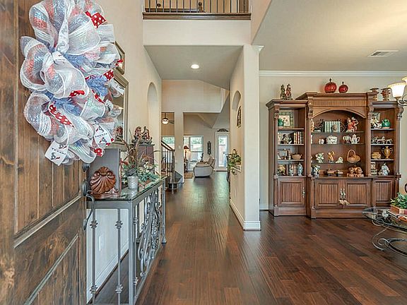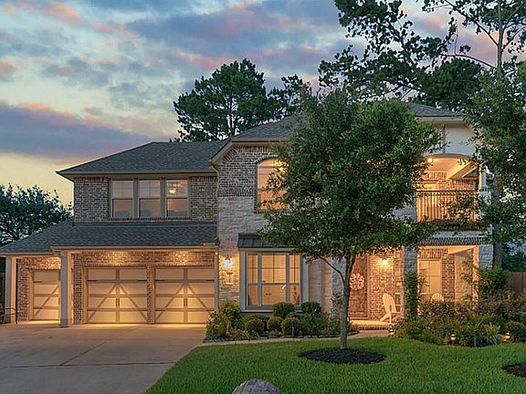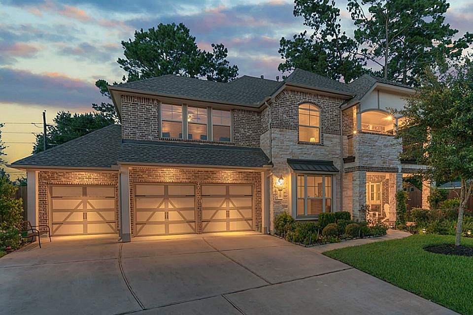 Stunning, nearly new home, in the exclusive gated community of The Sanctuary. Perfect location for easy access to both I45 and I99. Step inside and appreciate the elegant finishes this home has to offer including hickory hardwood flooring, GE Cafe appliances and beautiful stone fireplace with wood mantel.Spacious kitchen with over-sized breakfast bar. Covered patio includes outdoor kitchen. Large private yard with no back neighbors and 8ft privacy fence. Plus 2 bdrms down, 3 car garage, new roof