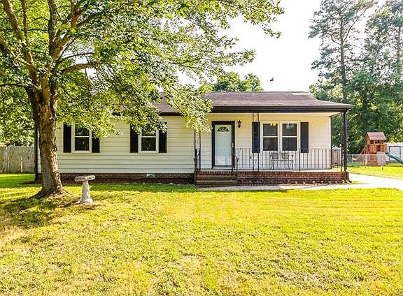 Easy to show, well-maintained rancher with MASSIVE backyard. This 1,000+ square foot rancher features maintenance free aluminum siding, a covered front porch, and an open floor plan that is easy to show! Walk in through the entry way with half wall to arrive in the family room. Beautiful hardwood floors throughout the house which leads to the large kitchen with eat-in area and large pantry. Multiple windows for plenty of natural light. Laundry closet with washer & dryer hookups. Continue down the hall to the three spacious bedrooms and 1.5 baths. Master bedroom has a walk-in closet as well as attached master bath! Walk out to the perfect backyard for entertaining! Full back deck with plenty of space for your grill and patio set. Brick patio off of deck for extra space. Detached 1.5 car garage equipped with heating & air has a built-in workshop! Large detached shed for extra storage!! Fully fenced-in, flat backyard is perfect for children or pets! One-level living with easy access to Interstate 95, Fort Lee, and shopping/restaurants!!