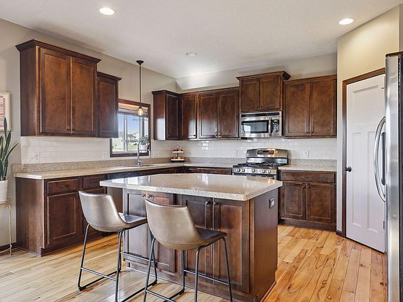 Welcome home to this beautiful open floor-plan property in Lakeville! The lovely front porch welcomes you in and you can see straight through the home to the large maintenance-free deck overlooking the fully fenced-in yard. The main floor really shines in this home with a large office/playroom, a spacious living room with a stone fireplace, and an awesome kitchen with tons of cabinet space and a center island. On the second floor, you'll find four bedrooms including a huge primary with walk-in closet and separate tub and shower as well as 3 other bedrooms and a laundry room! Build equity with a huge unfinished basement with a walkout leading to the back patio. There is enough room for a bedroom, living space, finished bathroom, and still have room left for tons of storage! The elevation and many west-facing windows create the perfect formula for spectacular sunsets you won't get anywhere else in town. NEW roof in 2019 too! Schedule your showing today!