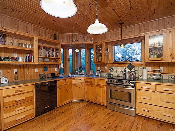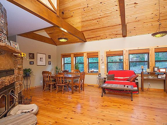 Perfect rustic retreat! Secluded log cabin style home on 5 wooded acres in Stone Bluff area. Custom woodwork in every detail. Large, 2 sided stone fireplace in open living area. Custom back & front deck. Attached garage apartment or 2nd living area.