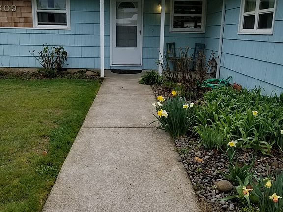 This Portland one-story corner lot home offers hardwood and tile flooring, stainless steel appliances, a back patio, and a two-car garage.