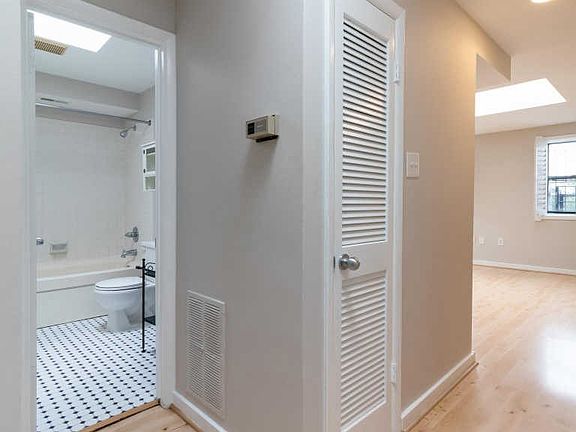 Available Immediately! Sunny 1BD/1BA corner unit with tons of charm! Top floor unit (4th floor) w/skylights, plantation shutters, wood-burning fireplace & built-in bookcases. The kitchen opens to the living room. Bonus features include a full-size refrigerator and washer & dryer & plenty of closet space! Don't miss the lovely rooftop deck just one story up! Conveniently located near Adams Morgan & U Street shops.